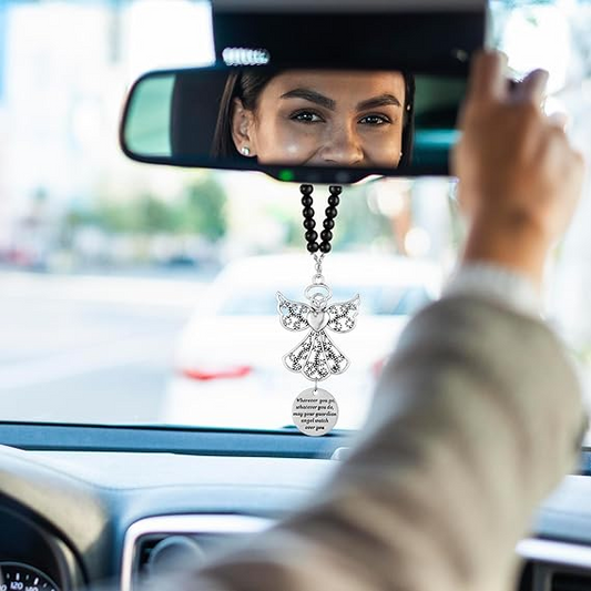 ✨Car Hanging Ornament ✝️ Guardian Angel Cross Compass Beaded Necklace – Christian Gift for Protection & Blessing