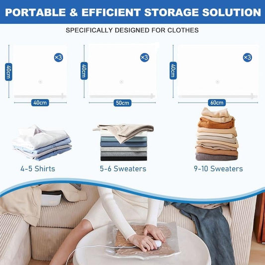 🔥9er-Pack leichte Reisetaschen mit elektrischer USB-Pumpe | Kompakte Vakuum-Aufbewahrungsbeutel für Kleidung | Platzsparende Kompressionsbeutel für unterwegs