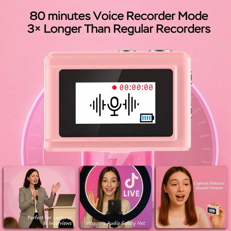- 【80+ Minuten Dauerbetrieb】 Länger fotografieren! Unsere Mini-Digitalkamera verfügt über einen 180-mAh-Akku für mehr als 80 Minuten Dauerbetrieb. Einzigartiges Live-Laden per Typ-C ermöglicht gleichzeitiges Aufnehmen und Laden – ideal für längere Veranstaltungen wie Abschlussfeiern oder Roadtrips.