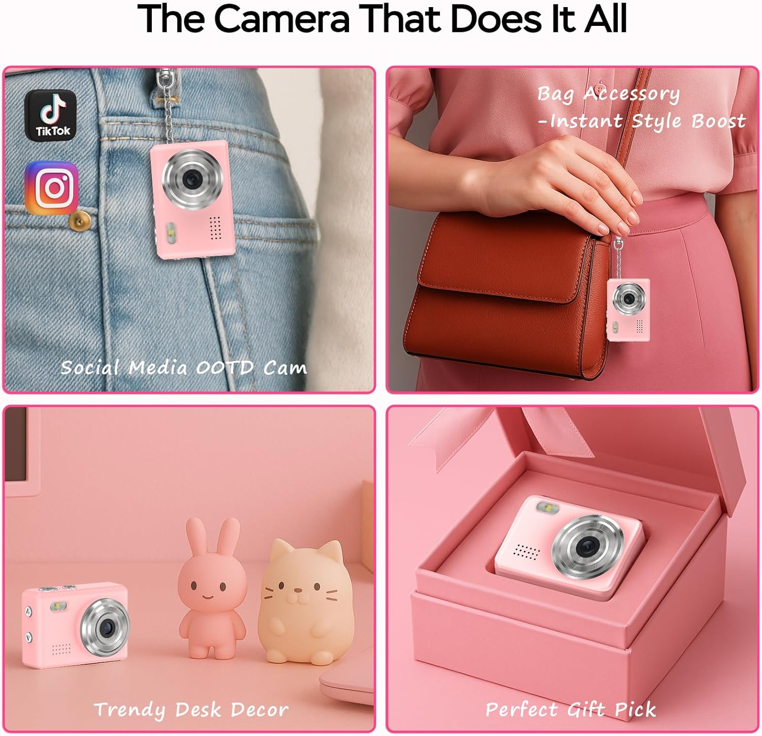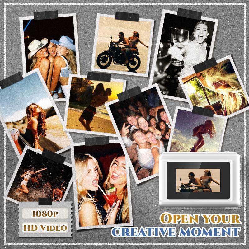 - 【Professionelle 1080P-Videoleistung】 Gestochen scharfe 1080P-Videoaufnahmen und ein 0,96-Zoll-Bildschirm sorgen für farbenfrohe, lebensechte Aufnahmen von Personen und Ereignissen. Lautsprecher aus Aluminiumlegierung liefern klaren Ton, während der integrierte Blitz die Fotografie bei schwachem Licht verbessert – perfekt für lebhafte Nachtmärkte oder Landschaften zur goldenen Stunde.