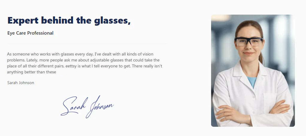 Hundreds of happy customers say that our adjustable glasses are what's coming next. These smart frames are changing everything about glasses. They're simple to use, feel great, and give you a custom fit that no other vision solution can match.
