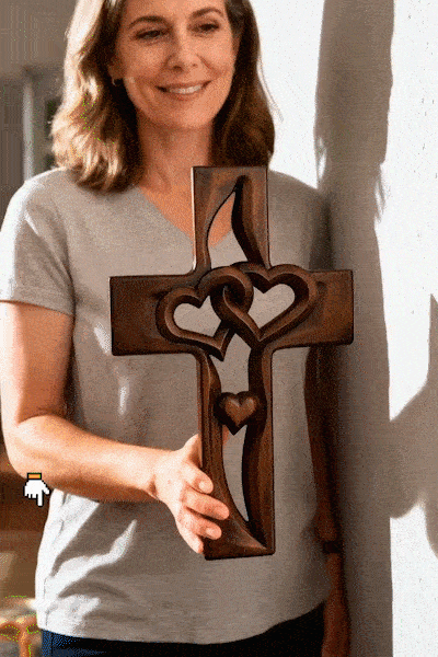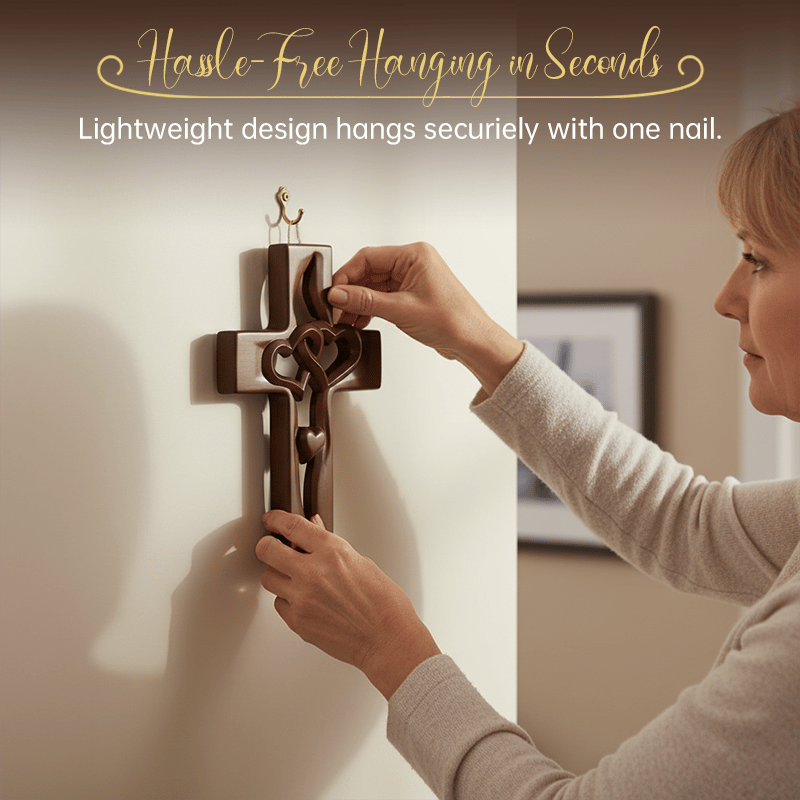 This piece tells a story. The two hearts are carved intertwining at the center to symbolize a bond that cannot be broken, protected by the strength of the cross. It serves as a daily spiritual reminder that love and faith are the unshakeable pillars of your home.