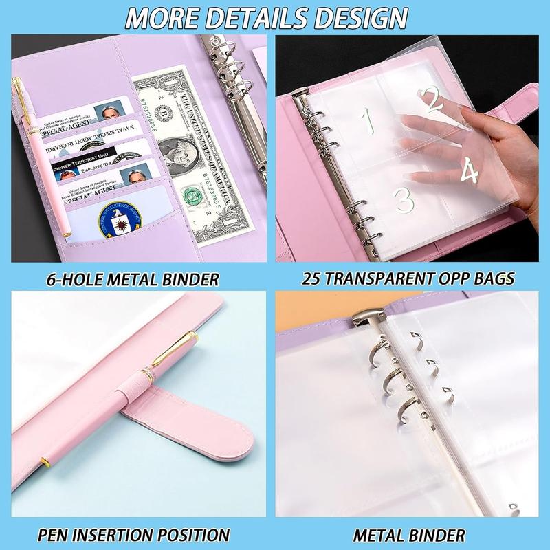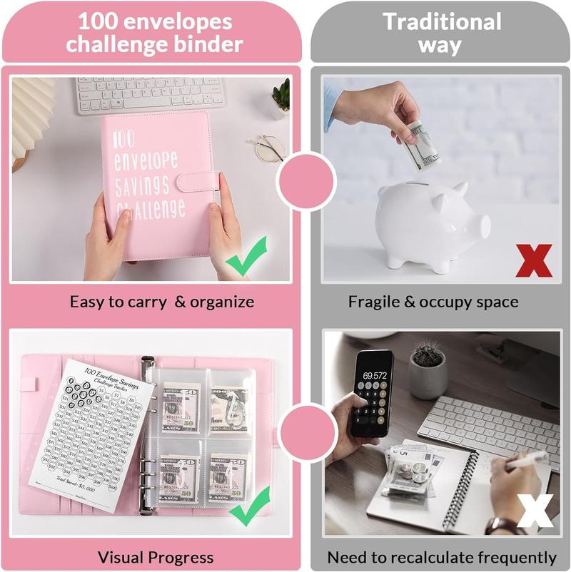· 【A5-Geldsparordner】 1 A5-Ordner aus PU-Leder mit 6-Loch-Geldumschlägen, vorgedruckt mit 1-100 1-Blatt-Tracker von 1 bis 100 $. Kann Ihnen beim Anlegen eines Notfall-Sparfonds helfen