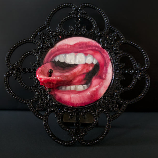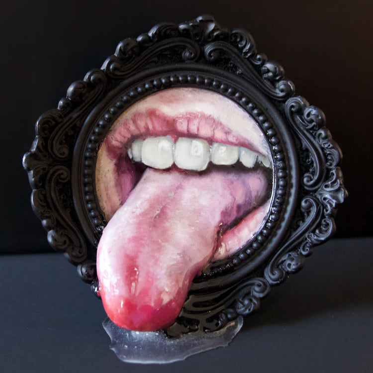 Reine handwerkliche Exzellenz: Jedes Detail, von der lebendigen, realistischen Textur der Zunge bis hin zum kunstvollen Rahmen, wird von meinen eigenen Händen geformt, bemalt und perfektioniert. Keine zwei Stücke sind genau gleich, was Ihr Stück zu einem echten Unikat macht.