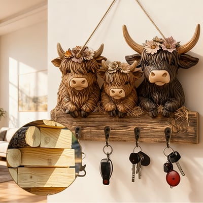 ⏰Final 3 Hours🎉🎁 Highland Cow Key Holder - Rustic Home Decor