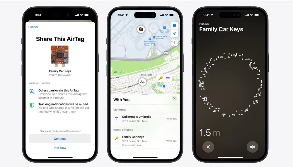 AirTag(Built-in) can be shared with up to five people, allowing friends and family to track shared items, such as umbrellas, bicycle keys, or car keys.