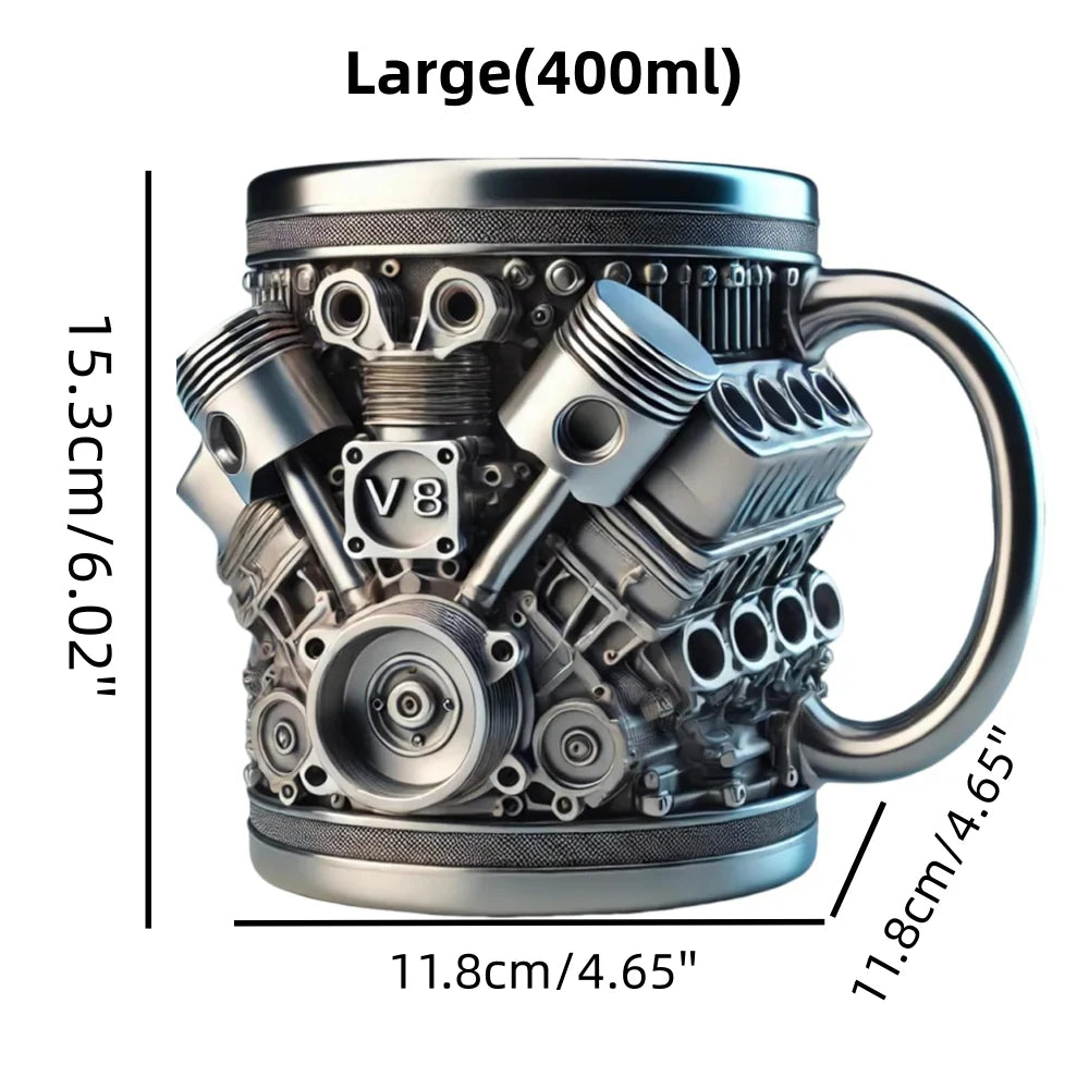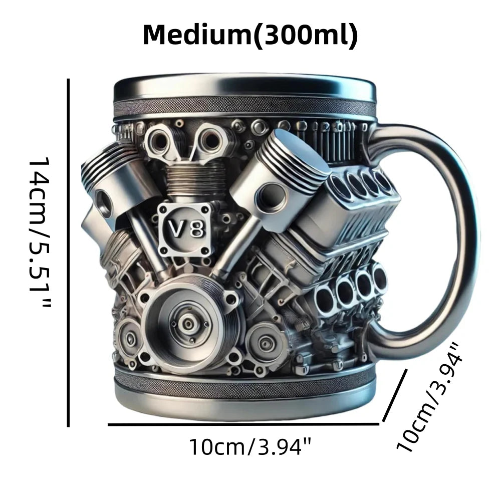 Fuel your day with a mug designed for car enthusiasts. Featuring a detailed 3D engine design, this stainless steel coffee cup is perfect for sipping your favorite beverage while celebrating your passion for speed, power, and precision engineering.
