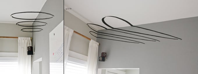 The illusion is deceptively simple — and even once you know how it works, it can still feel unbelievable. Three peel-and-stick panels (repositionable, paint-safe) are precisely aligned along the walls that meet in the upper corner of a room. Each decal is designed with carefully calculated visual cues that reinforce the illusion of an inverted space — making the corner appear to protrude outward instead of recede, flipping your sense of depth and reality.