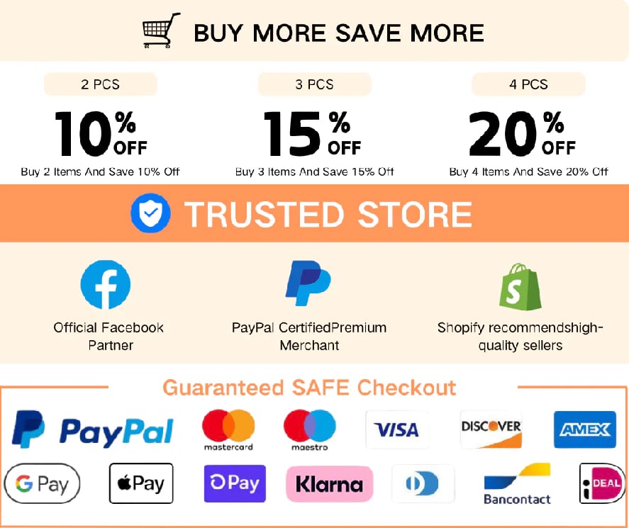 The Checkout Process is Guaranteed to be 100% Safe and Secure with Visa, Mastercard, AMex, Discover, Apple Pay or PayPal.
