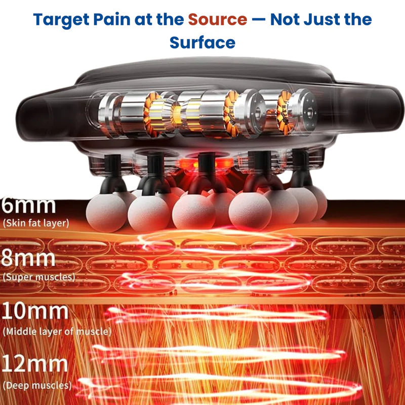 • Penetrates 12–16mm deep to target muscles beneath the skin.