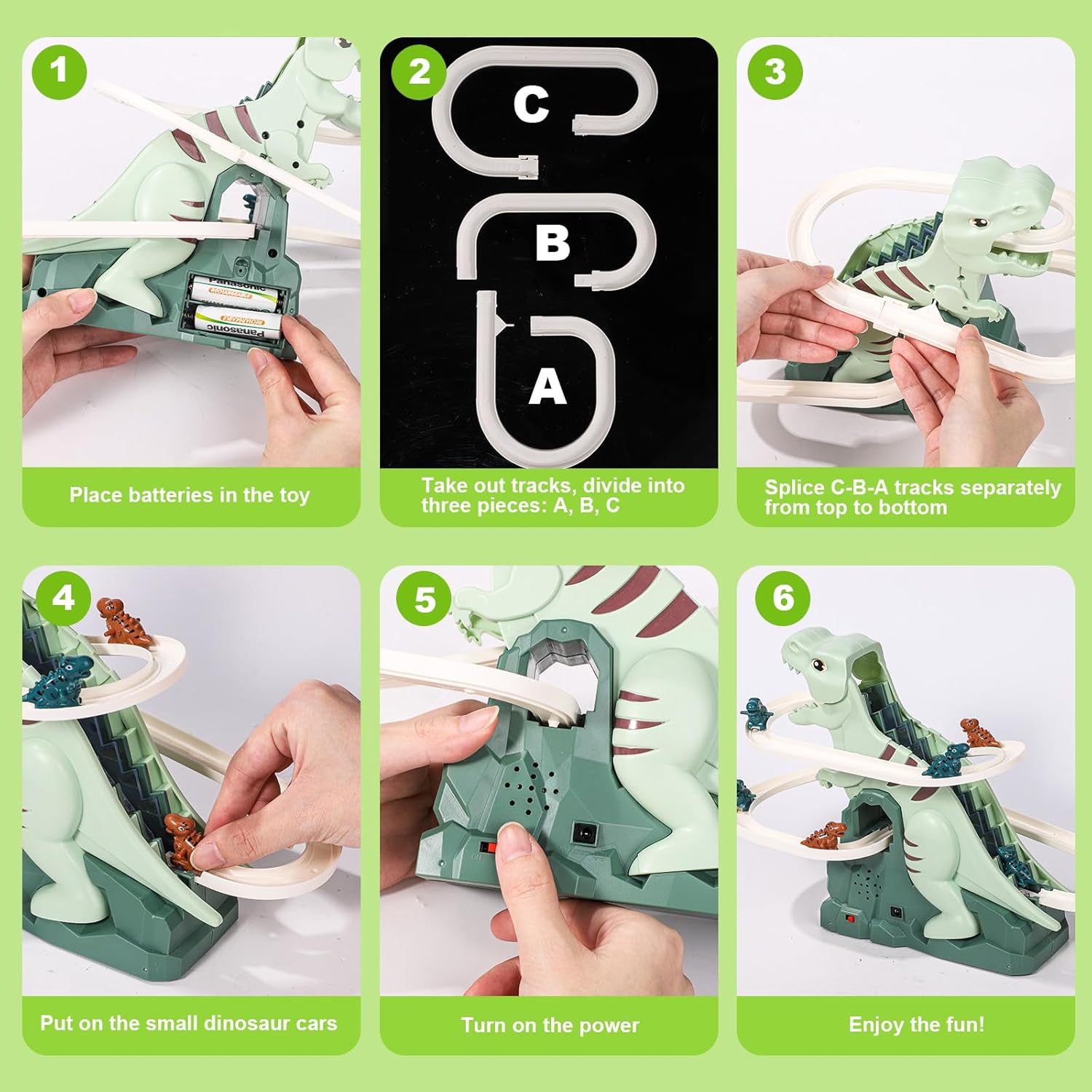 The dinosaur roller coaster toy is very easy to install. Your child can complete the installation by themselves and exercise their hands-on ability and cubic imagination. This product battery is already included for you.