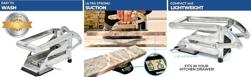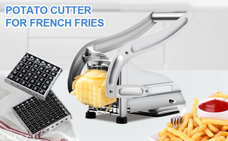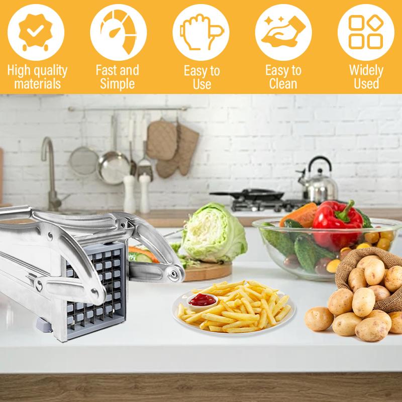 🍟 Effortless French Fry CuttingMake perfectly shaped fries in seconds! This French Fry Cutter features two interchangeable blades that let you slice potatoes into thick or thin strips with ease. Just press down — no mess, no fuss, just crispy fries ready to cook.