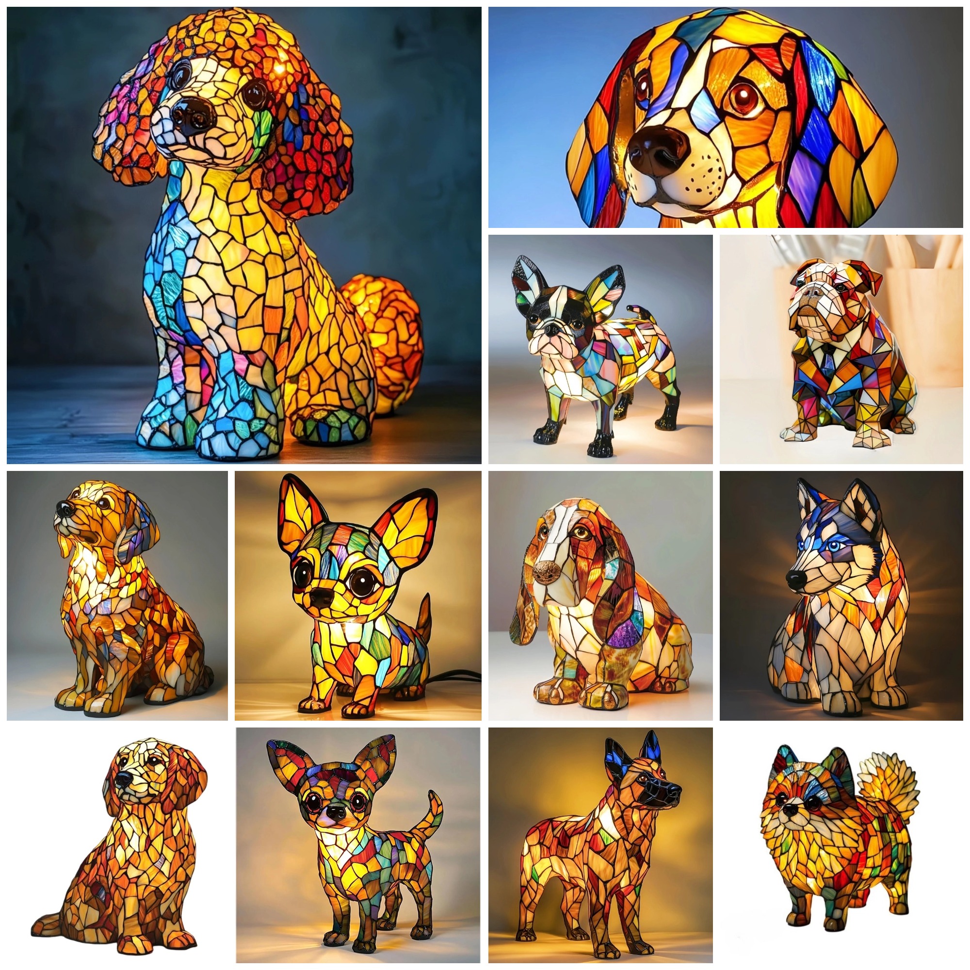 Bezaubernde Mehrrassenhunde-Designs: Von charmanten Corgis und Dackeln bis hin zu französischen Bulldoggen - jede Harzlampe fängt die verspielte Persönlichkeit Ihrer Lieblingsrasse mit Vintage-Glasmalerei ein