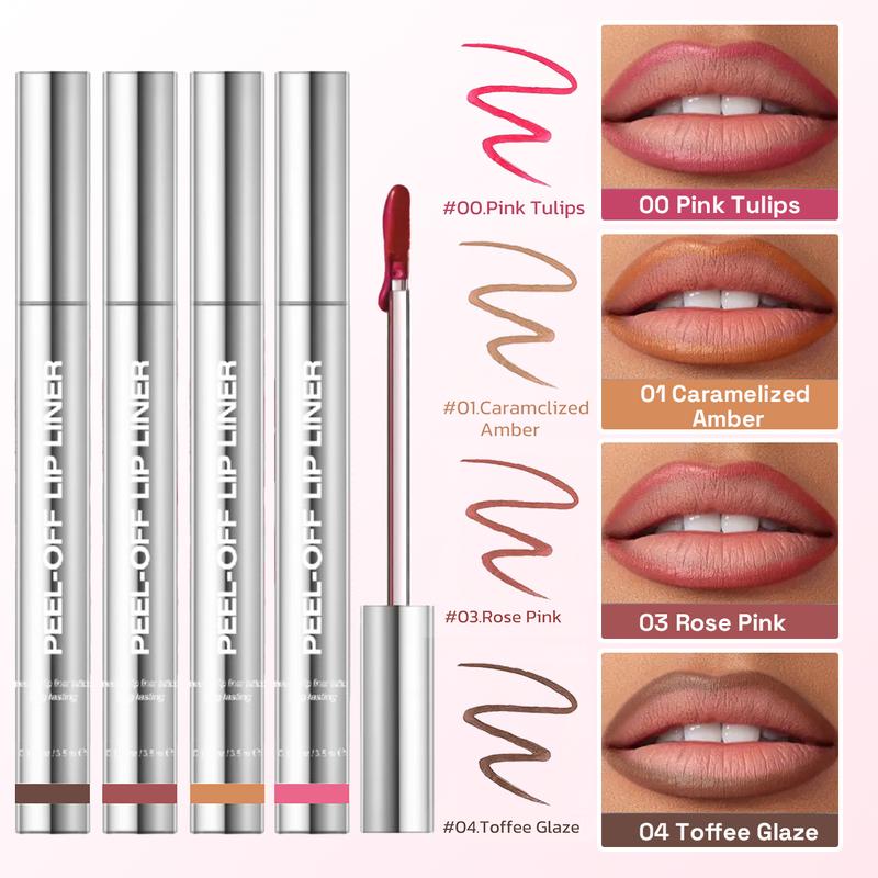4Pcs Peel Off Lip Liner Stain Set Waterproof Nude Matte Lip Tint