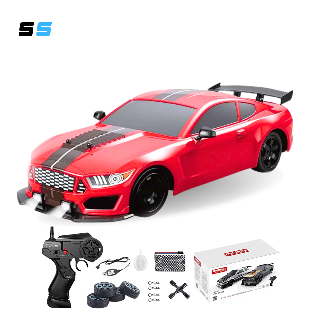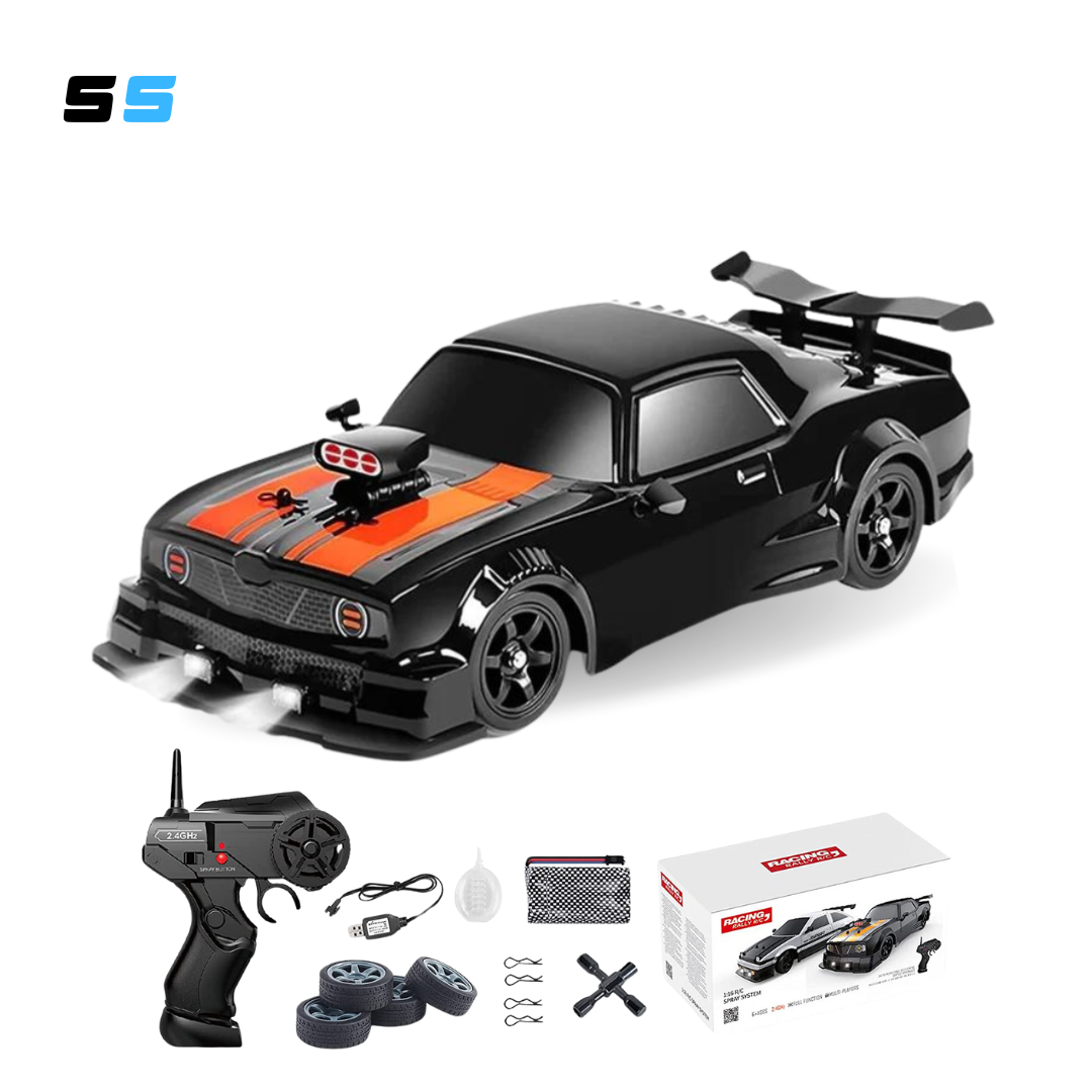 Our VaporStorm Exhaust System gives you a cool way to add water and make it look like a real exhaust! Just fill the tank under the car, press the red button on the controller, and enjoy the awesome glowing vapor while you drift. It really makes the drifting experience even better!