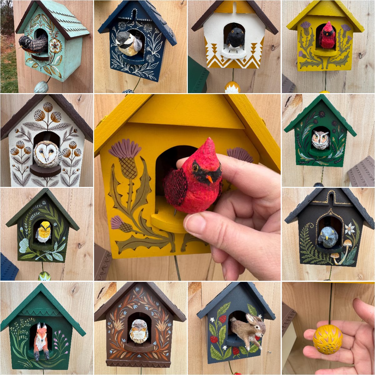 - Handcrafted birch birdhouse, fully hand-painted